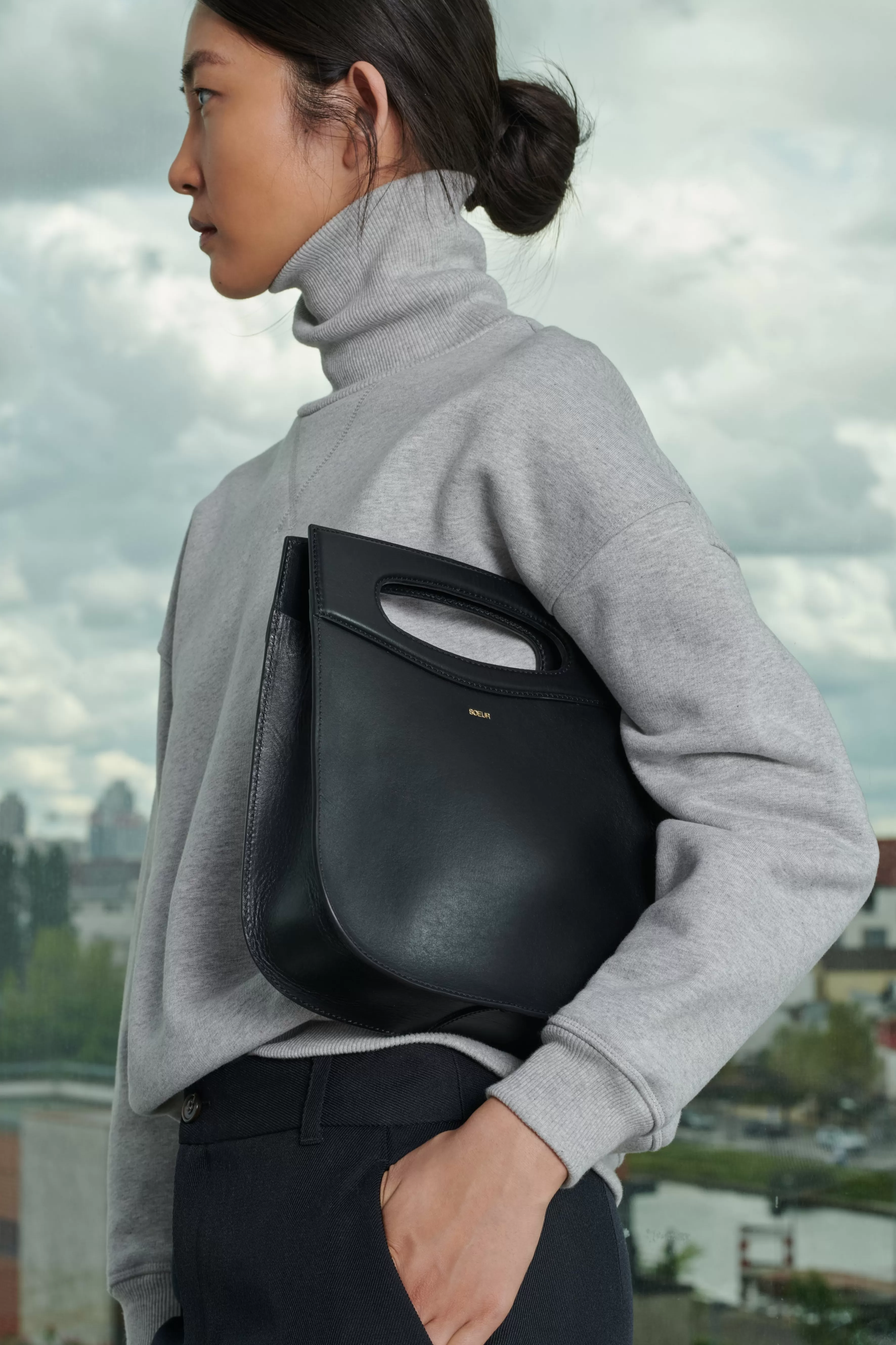 Sweat-shirt col montant – Coupe oversize resserrée par bord côtes en bas de corps– Col montant– Finition bords côtes au col et aux poignets