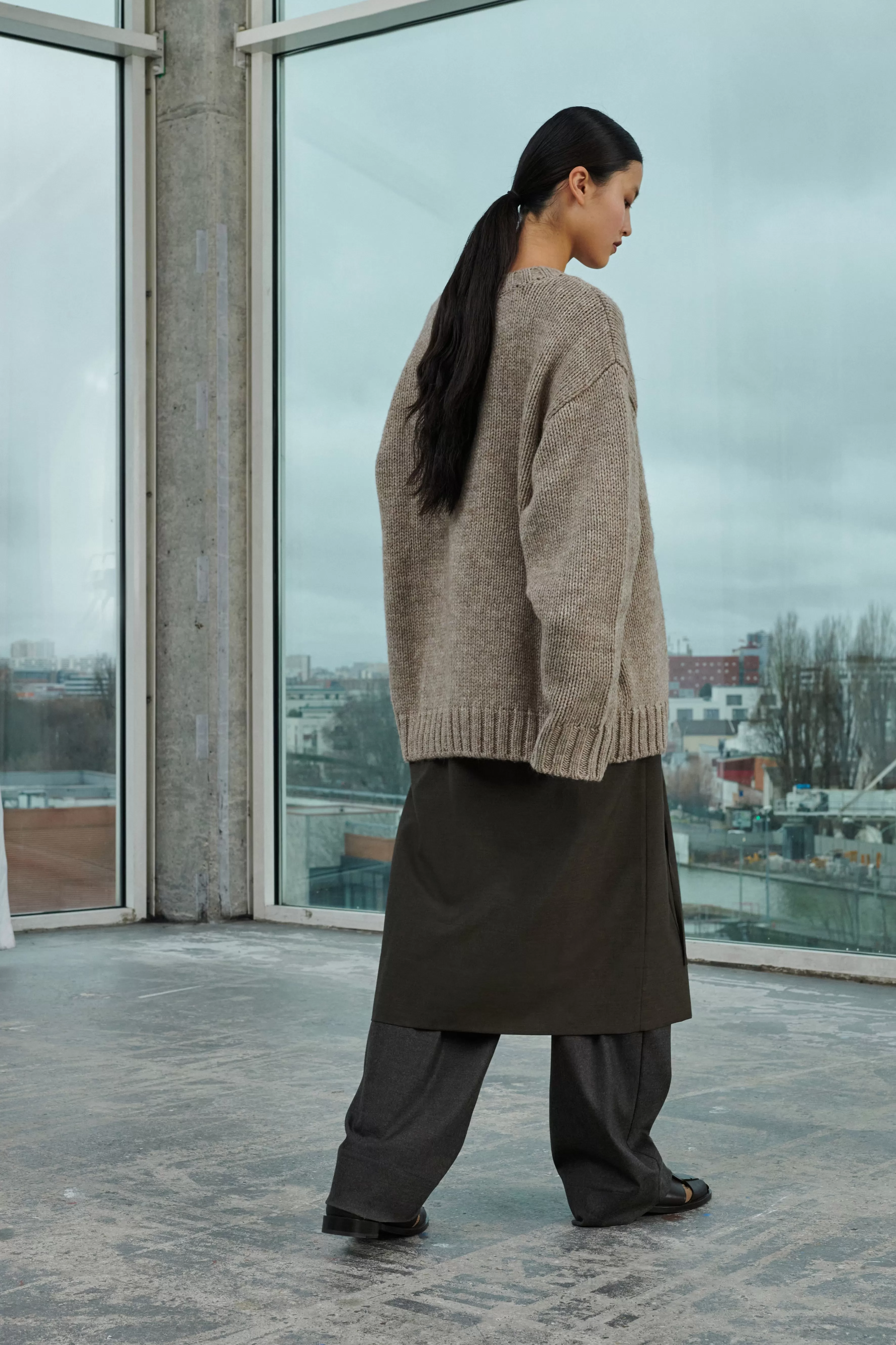 Pull col rond oversize – Coupe ample– Encolure ronde– Finitions bas de corps et manches en bord côtes– Grosse maille La laine est mulesing free.