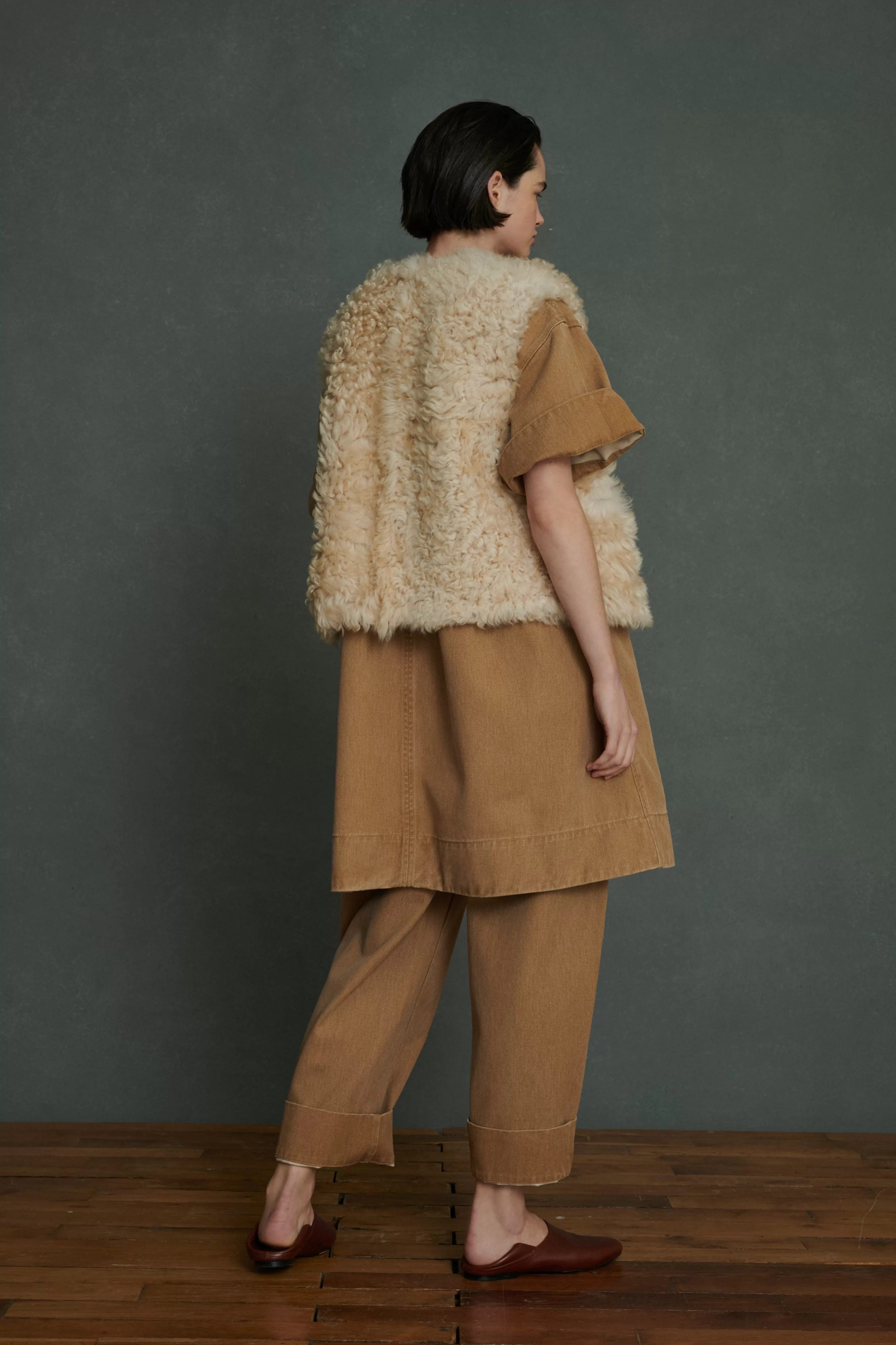Babouches plates en cuir souple cognac